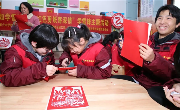 此次活动,学校联合三里街临淮路社居委共同开展。学生志愿者们身穿印有“志愿者服务标志”的红马甲,在社区工作人员带领下分组行动。有些同学来到红色剪纸活动现场,非遗剪纸传承人宋丽文老师现场创作“雷锋”剪纸作品,并教授同学们学习红色剪纸手艺,让同学们在感受传统非遗魅力的同时,学习和传承雷锋精神。随后李永祥爷爷为在场的同学们讲述雷锋的故事,同学们在收获感动之余更表示践行雷锋精神就是要从小事做起,从身边做起。有些同学进入小区,清理垃圾,改善社区环境卫生,他们还不忘提醒居民不能忽略疫情防范,注意平时勤洗手,出门戴口罩。还有一些同学走上街头,对过往居民进行垃圾分类常识介绍,通过宣传手册发放和现场互动的方式,让居民了解了垃圾分类的重要性。