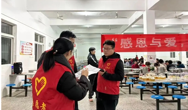 近日,在宿松县程岭初中的校园集体生日会现场,有一抹亮眼的“志愿红”——他们是为活动全程护航的党员教师与学生志愿者。从当天下午的场地布置,到活动中的秩序维护,再到陪餐时的贴心服务,这群“红马甲”用细致入微的行动,让“感恩与爱”的主题不仅体现在生日会的仪式里,更融入了每一处服务的细节中。