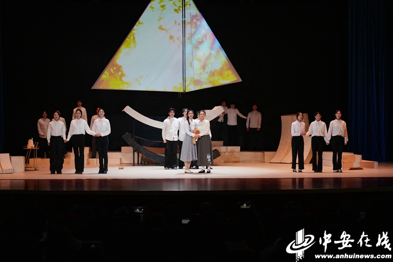 “《抉择》是我们学校倾力打造的原创作品,通过杨振宁、许鹿希、邓志典等人的回忆视角,串联起邓稼先同志报效祖国、默默奉献的一生。”在剧中饰演邓稼先的安徽艺术学院教师曹磊动情地说,希望通过这部剧,向所有为了祖国科技事业而默默付出的科技工作者,致以最崇高的敬意。“这部戏由师生同台演出,整个过程就是一堂生动的思政课。我们不仅是在演绎故事,更是在内化与传承那种胸怀祖国、服务人民的精神力量,希望它能激励我们每个人为祖国的建设贡献自己的一份力量。”