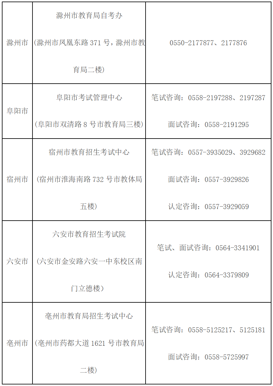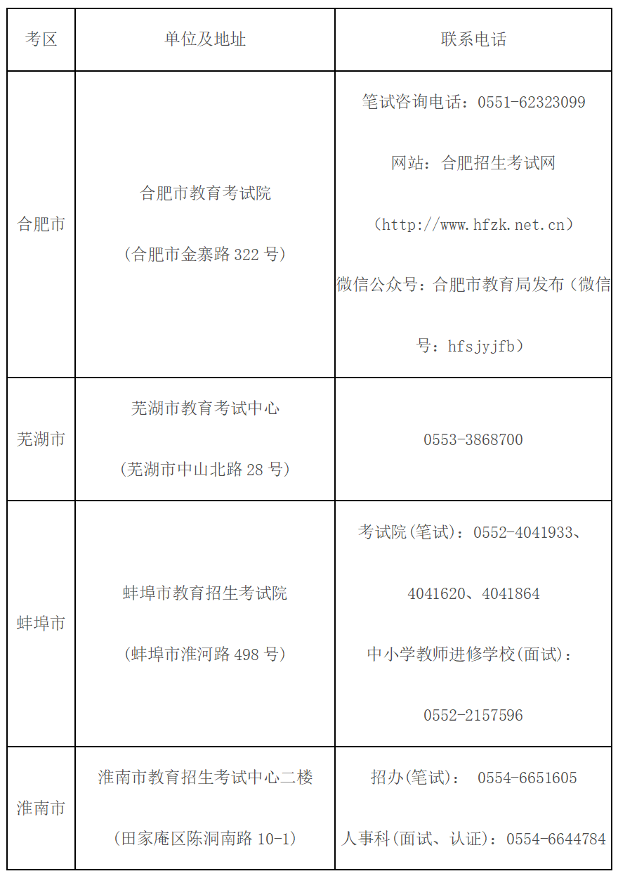 (七)政策咨询电话:0551-64495743、64495938,笔试报名期间考务咨询电话:0551-63611207。
