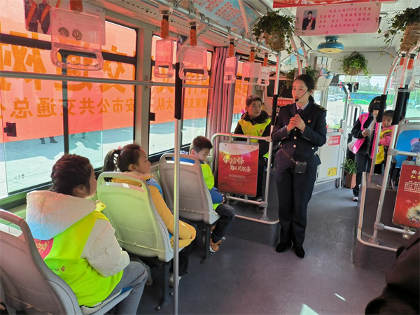 3月3日下午,在六安市公交公司大院,小记者和小志愿者们走进公交车厢,聆听全国五一劳动奖章获得者、安徽省文明交通志愿者、公交司机张继菊分享有关她如何周到细致服务乘客,学雷锋做好事的温情感人故事。她还细致讲解普及有关公交车站、公交车厢内需要遵守的文明行为规定、以及文明出行注意事项。