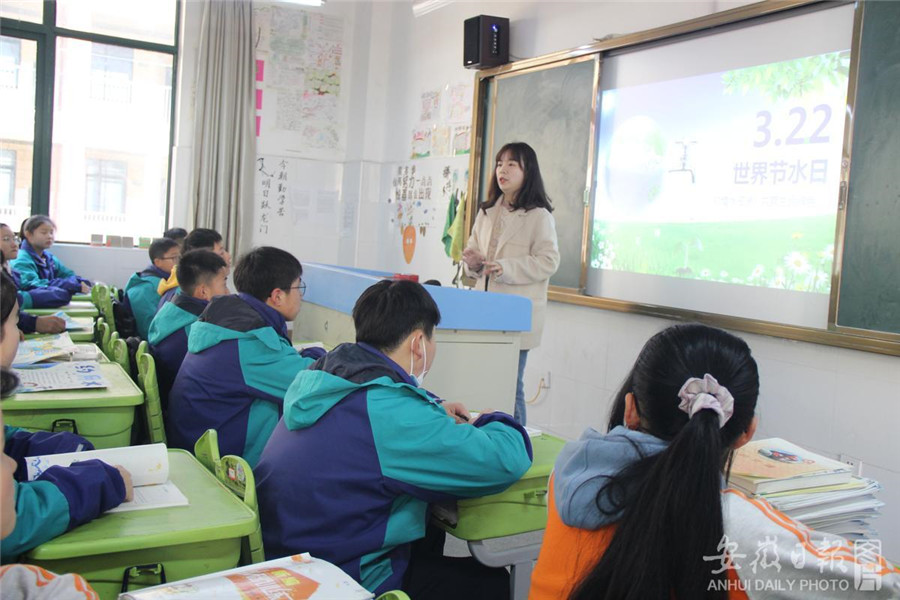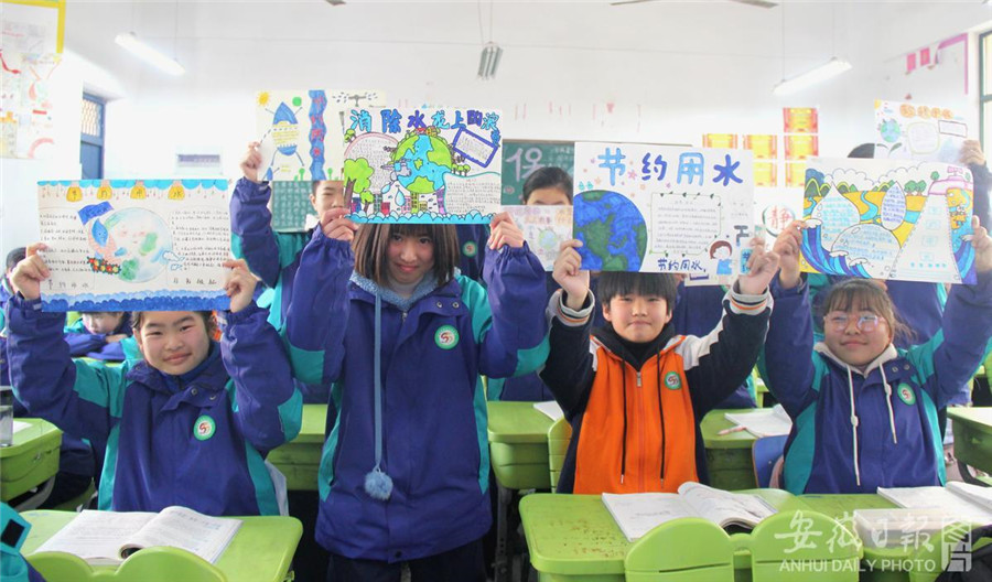 3月22日是第29届“世界水日”,为进一步提高学生的节水意识,合肥市第五十五中学教育集团东校今日开展了形式多样的主题教育活动。学校地理老师给学生们讲解水资源相关知识,学生们也也围绕“世界水日”,制作了精美的宣传画、手抄报,图文并茂,传递着节水环保的美好心声。通讯员 童宗权 摄