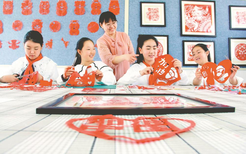 4月14日,在铜陵市义安区实验小学103班返校复学“第一课”上,同学们在老师带领下学做抗疫手势舞。当日,铜陵市各类学校全面恢复线下教学活动,在扎实做好校园常态化疫情防控的同时,通过返校复学“第一课”,提高学生健康防护意识。
