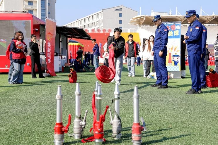 11月5日,2025年滁州市119消防宣传月启动仪式在滁州城市职业学院举行。活动现场精心设置了消防科普讲解区、装备展示区等,吸引了师生踊跃参与。本报通讯员 冒家云 摄