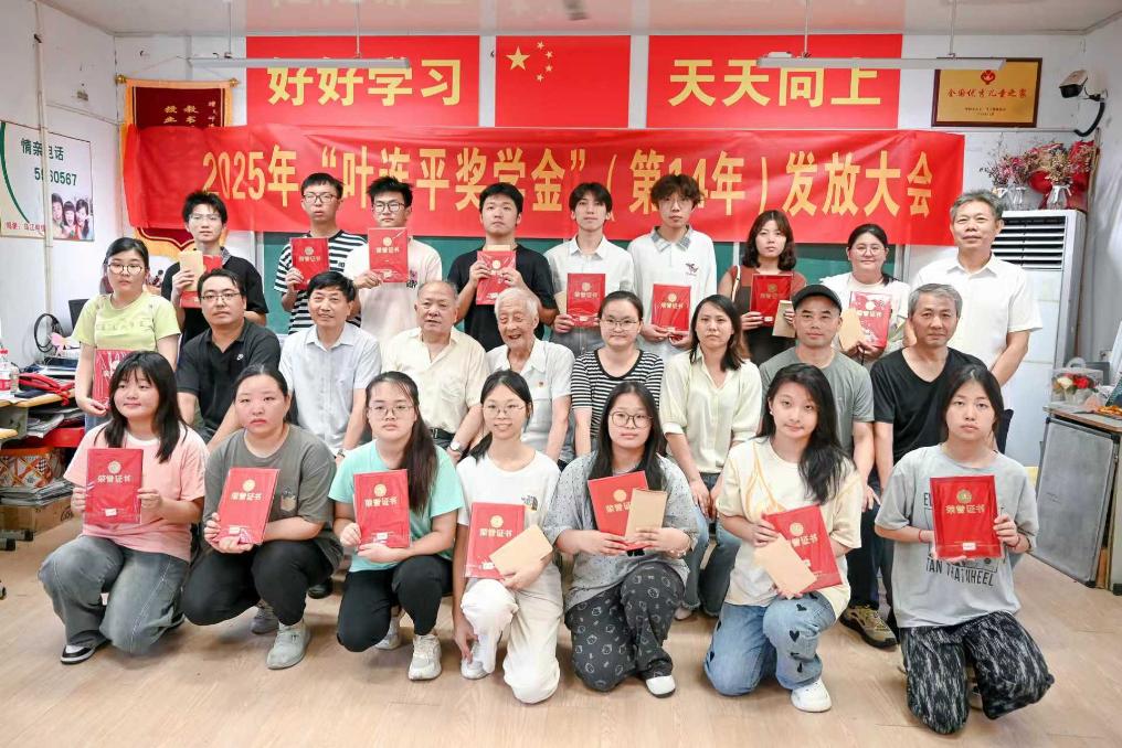 8月12日,叶连平与获得“叶连平奖学金”的学生合影留念。(受访者供图)