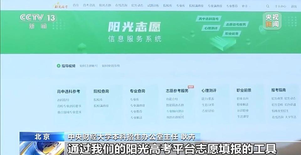中央财经大学本科招生办公室主任 耿卉:通过我们的阳光高考平台志愿填报的这个工具,包括还有一些社会上免费的工具,我们都能够很容易根据自己预估的位次,先对高校进行一个大概范围的框定。